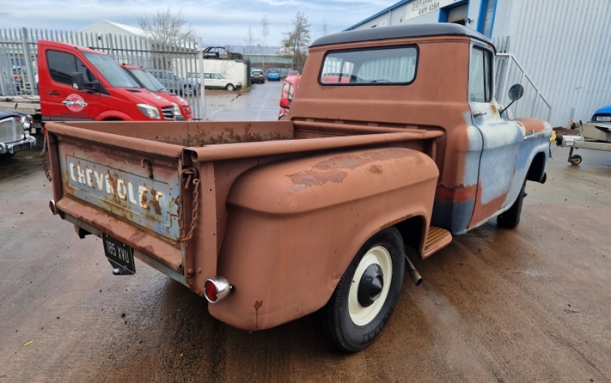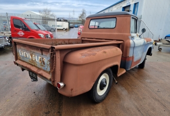 Body - 58 Apache. Chassis is all solid and has been painted. Truck has had repairs on lower cab corners and door bottom but is all really rock solid. You could run it as it is or get it all painted. Its a mixture of grey primers, red lead and rub throughs. Some folk love it as it is. Door rubbers missing which makes them a bit rattly