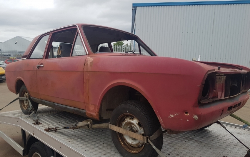 Ford Cortina MK2 2 Door Rolling Shell. What you see in the pics is what you get.
