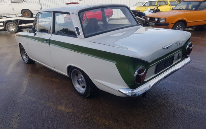 Body - 2 Door Cortina Shell - Good strut tops, inner wings, wings, doors, boot, bonnet quarters. Has had a repair in the boot well previously which really needs redone. Also had a couple of minor repairs underneath but overall a really good strong shell for its age.. Paintwork is OK and perfectly useable but no show winner. Panel gaps are decent. Evidence of a bit of a filler in lower quarters at the rear and on the corner of the passenger side door.