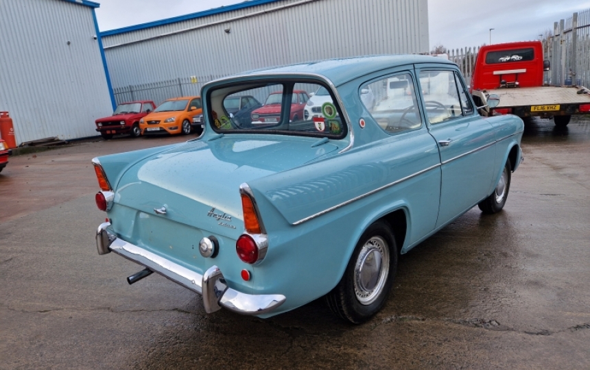 Body - 105E Anglia shell which has never been welded. Very Solid original car from front to back. You can still see every factory spot weld. No sweating or swelling. It has definitely benefited from being in a hot dry country all its days. Looks like all original panels. Paintwork is very tidy with only a couple of minor marks. No signs of filler in this one.