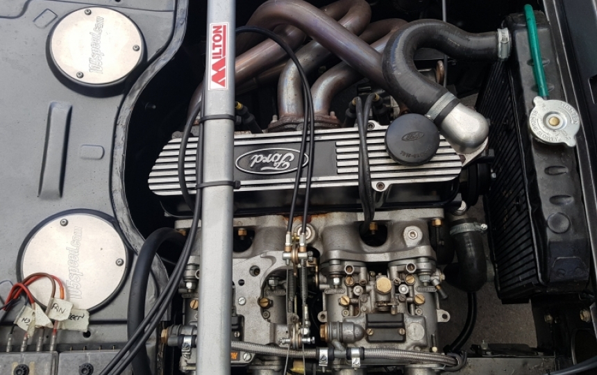 Body - Standard Anglia shell with all the rot removed and repaired. Car was then fully repainted throughout including underneath. The finish is very good and the car has virtually done next to no miles since being built so there are no stonechips or gravelrash. When the previous owner built it he added a fibeglass bootlid and wings for lightness as its a modified car rather than a period correct concourse car. The car looks superb in the grey black / combination and stands out from the rest.