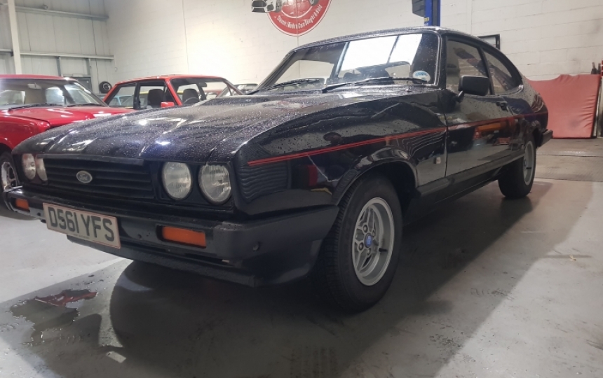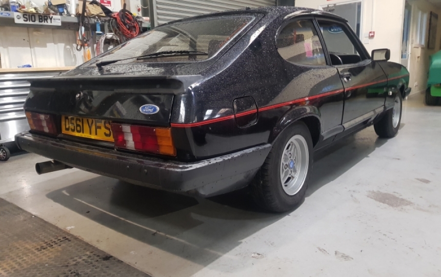 Body - Capri Laser shell. Original floors, sills, arches, boot floor. Has had repairs on strut tops in the past and a repair on top of the drivers door post. Underneath is very good. Needs a bit of a wirebrush in bits but no holes or rot. Jacking points have the usual dents but overall very good. Paintwork has survived well and the car is very presentable. There is a bit of bubbling on nsr lower quarter that will need attended to and a few storage marks here and there. Overall a decent looking old car