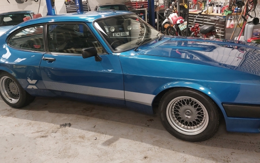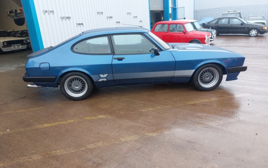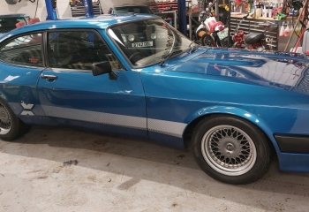 Body - Genuine 3.0 Capri shell. Very good underneath. Had a couple of very minor repairs in the past by the look of it but generally very good. Chassis number still clearly visible on the inner wings. With it being an X pack kit the front wings are fibreglass and are bolted on. The kit looks to have been well fitted as under the rear arches is tidy and no signs of any cracking despite it being done around 10 years ago. The paintwork is very tidy. There are a few minor marks as you would expect. Its a good looking car which will get a lot of attention. Bonnet sits a little bit forward of the wing on driver side. Given that the wings are bolted on this would be a fairly easy adjustment.