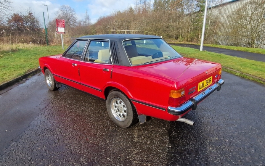 Selling on behalf of a customer this superb Cortina MK4 3.0 Ghia Automatic with only 28000 kms or 18000 miles from new. It was imported a few years ago from South Africa and is fully UK registered. Its an extremely original old car and also very rare being a 3.0 Ghia. There are no signs of it ever being welded or painted