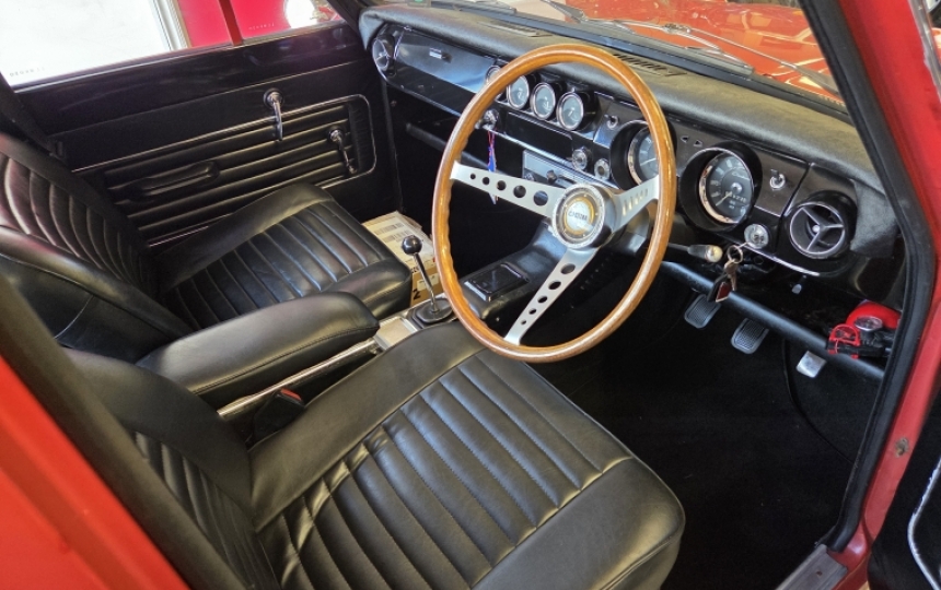 Interior - Correct GT interior. Front seats have recently been repaired and are in good order. Good dash top. Original door cards. Nice and tidy inside.