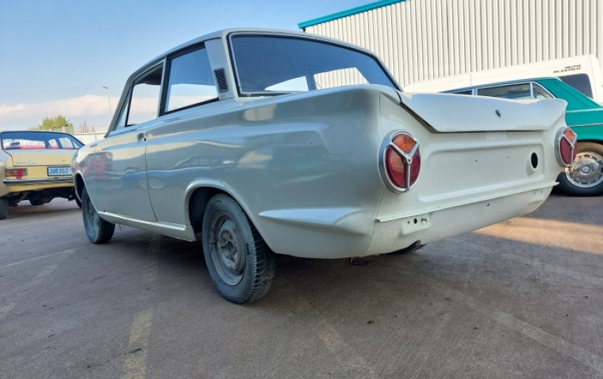 Ford Cortina Mk1 1500GT  Rolling Shell. This car is Left Hand Drive and spent its first few years abroad. It was imported to the UK in 1972 and was given an L reg plate. This was how DVLA used to do it back then rather than allocating an age related plate. Its been in storage for at least the last 15 years and is extremely solid.