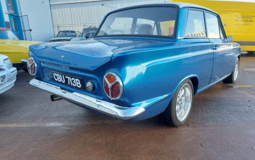 Body - Mk1 Cortina 2 Door shell. Original strut tops, inner wings, sills, arches, wings. Good straight car . Paintwork is very tidy. Minor bubbles on front of bonnet. Very solid underneath but has had a couple of repairs over the years. Very tidy solid looking car.