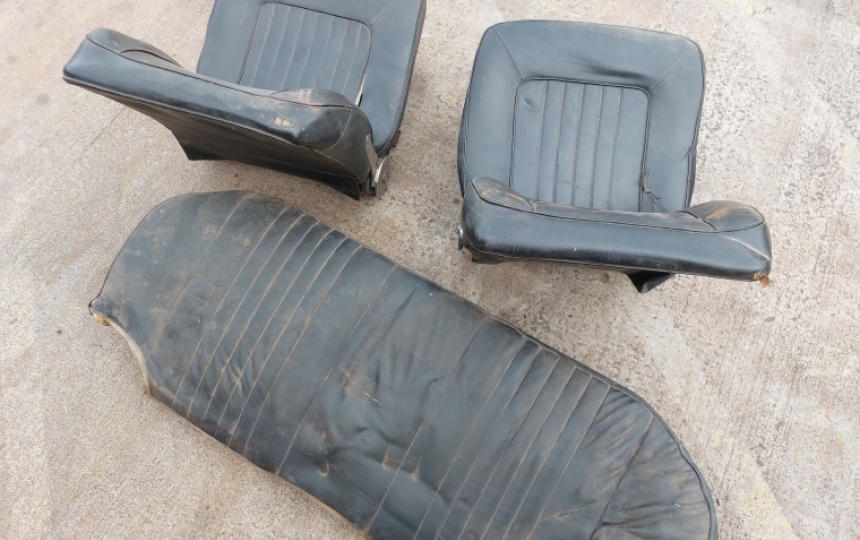 Interior - What you see in the pics is what you get. Scruffy door cards, two front seats, one half of the back seat. centre console.
