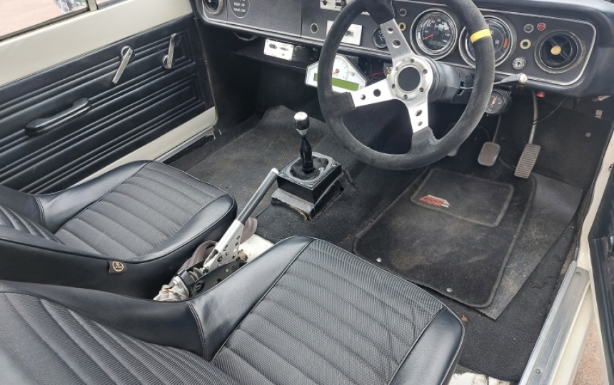 Interior - Period contour style buckets, original rear seat. Uprated guages as mentioned.above. Good headlining. Front carpet only fitted.