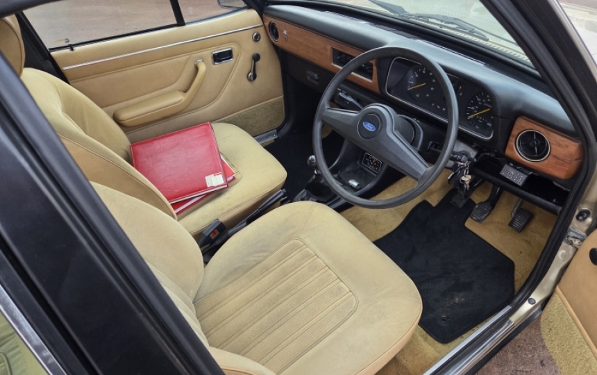 1978 Ford Escort MK2 1.3 Ghia. First Registered by The Godfrey Motor co Ltd in Cardiff. The first lady owner kept this car until 2004. It had a further 3 owners up until 2014 when the last owner got it. He has cared for it for 12 years and the car is a superb example. Its finished in Oyster Gold metallic, comes with a comprehensive history folder, detailing all owners, old MOTs, service receipts and so on. This has been very well looked after over the years. It appears to have been Ziebarted from new