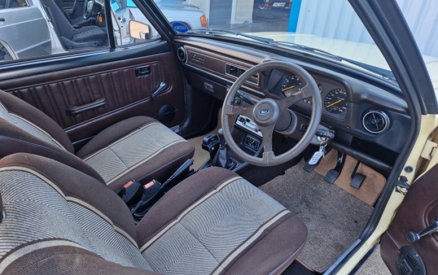 Body - Export spec shell with similar strengthening to our RS models. All original metalwork and really solid from front to back. The car has been waxoyled or an equivalent from new which has protected it. Paintwork is also very nice and looks very original to me. There are a few very minor marks but overall a lovely original old car, which hasnt been messed with. Good quarter bumpers with front and rear overriders. Original Ford flat headlights and original Ford spotlights as well.