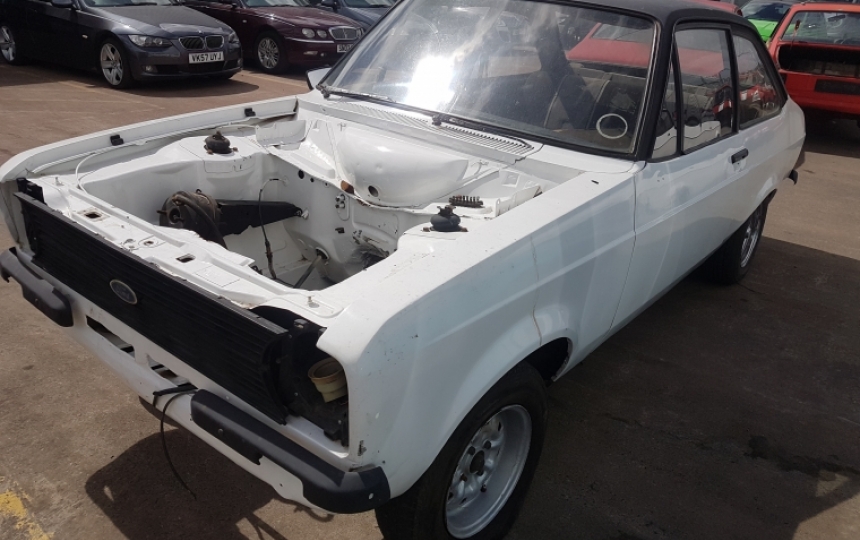 Ford Escort 1600 Sport, Rolling Shell. What you see is what you you get. In need of restoration but good starting point. Good inner wings , strut tops, rear floors are good. Will need work on front floors, boot wells, nsf chassis leg Also had a very minor bump on rear panel. Roof is not vinyl its black paint.