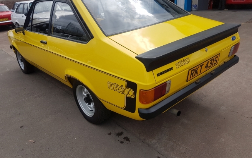 GENUINE MK2 ESCORT MEXICO IN SIGNAL YELLOW. MATCHING NUMBERS WITH ALL THE CORRECT BITS ON IT INCLUDING ALLOY SUMP, BELLHOUSING, 1.6 PINTO, AIRBOX AND SO ON. THIS CAR HAS BEEN IN A PRIVATE COLLECTION FOR MANY YEARS AND HAS SEEN VERY LITTLE ROAD USE ONLY HAVING COVERED 61000 MILES FROM NEW. IT HAD TWO UK OWNERS THEN SPENT SOME TIME IN NORTHERN IRELAND WHERE I BELIEVE IT HAD A FURTHER TWO OWNERS. ITS VERY VERY NICE INDEED AND IS VERY RARE IN THIS ORIGINAL CONDITION.