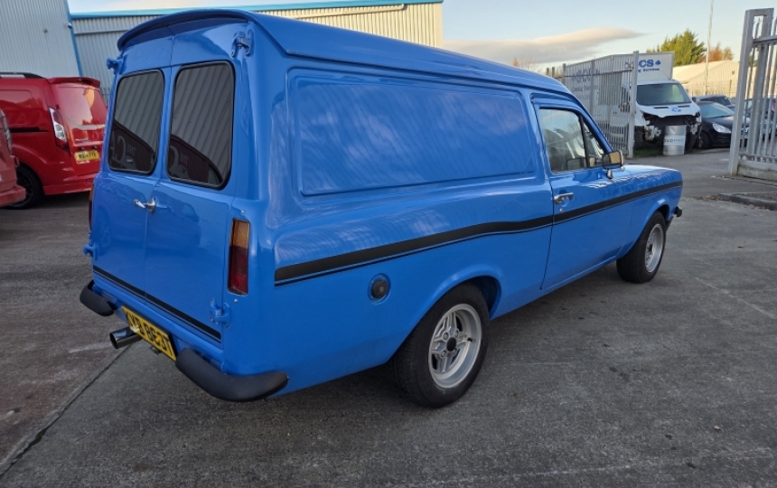 Body - Mk2 Escort Van shell. good original inner wings, strut tops, pillars. Floors have had repairs at the front in the past which are solid now. They are visible but by not bad. SA spec Sport front spoiler fitted, Sport quarter bumpers and spotlights. replacement headlights fitted. Paintwork is very presentable, I dont like the stripe but easily removed. Its had previous repairs on lower quarters and scuttle ends, which all look decent. Bottom of drivers rear door has been repaired and filled. Overall a good solid old van