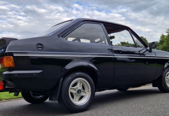 Original engine was blueprinted at JEM engines. Standard camshaft remains, Jem reconditioned injection head was fitted for unleaded fuel . new HP oil pump, NOS fuel pump, reconditioned original 32/36 DGAV carb remains. Ceramic coated RS exhaust manifold still showing RS script and not worn away with NOS ford heat shield. Standard steel exhaust system with twin down pipe. Original coil, NOS HT leads, motorcraft spark plugs, points, condenser. NOS Bosch distributor. Standard 4 Speed gearbox as it came from the factory, standard RS quickshift with NOS Ford clutch kit, NOS Clutch cable, new bearings in gearbox, NOS gearbox mount. NOS propshaft center bearing with reconditioned UJ joints. Painted in Satin black. Excellent condition Standard Rear Axle with original 3.54 diff all painted in satin black, excellent back plates, NOS handbrake cable, replated brake adjusters. Grey genuine motorcraft rear shocks. RS tramp bars as came from factory all in 2K satin black.