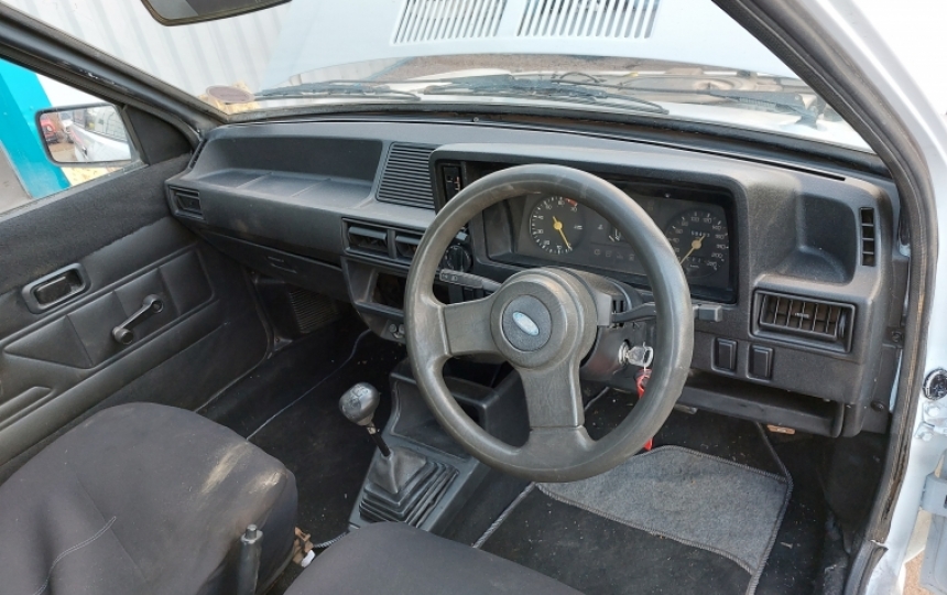 Interior - This one has the hard dash. Ive seen a few from over there like this. Not sure if factory or been changed. Strobe seats which are quite well worn. Correct XR3 clocks and steering wheel. Door cards are poor.