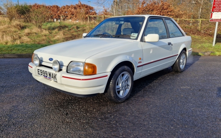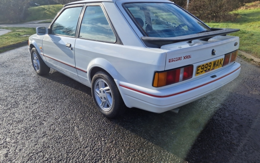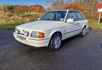Ford Escort XR3i with only 3 owners and a genuine 25000 miles from new. This is a lovely original example which comes with a years MOT. Still has its original dealer plates and window sticker. We have the original book packs, service book showing 4 stamps from the supplying dealer. We also have a few old MOTs. It appears the car was off the road in storage for a while. The mileage is genuine.