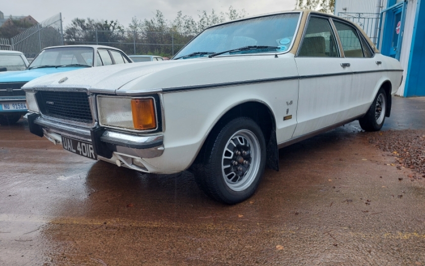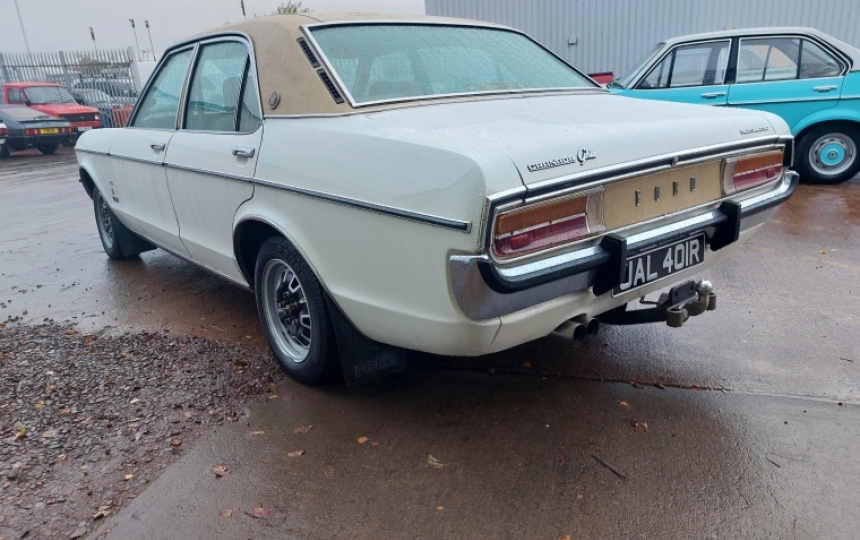 Body - MK1 Granada Saloon. All looks original underneath with no signs of previous welding. Car is very solid and is not caked with underseal or similar. The body is very straight and tidy. Paintwork is nice and presentable. Its not a show winner but would happily sit with the crowd at any show. Ghia grille, tan vinyl roof and matching rear panel. Has Perana badges and V8 badges on it, similar to a genuine Perana.