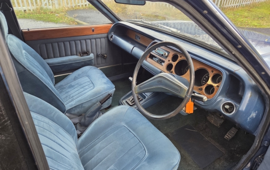 Interior - Matching blue interior. good door cards, seats are superb, good headlining and carpet. dash top has a few cracks on it otherwise nice inside. Two window winder handles missing but ill try track a couple down.