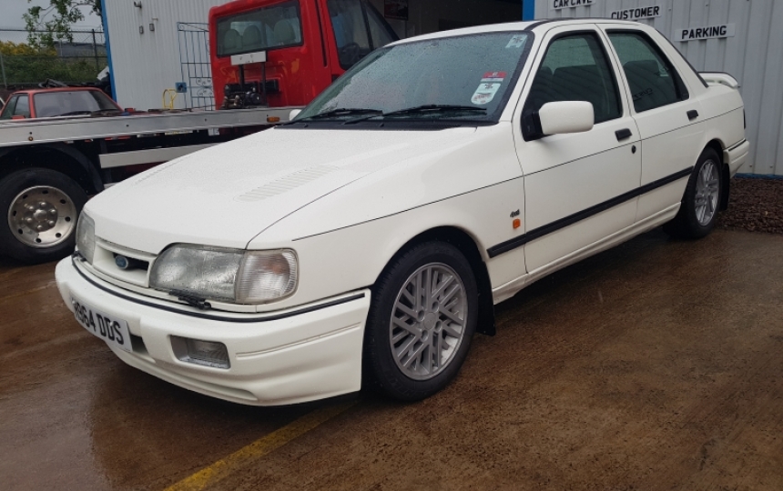 1991 Ford Sierra Sapphire Cosworth 4x4, 109k miles, last owner for 8 years . Car has been very well maintained and there are receipts for thousands along with most of the old mots and some tax discs. Very clean and tidy car. Body is very straight with no major dings / dents or damage. Paint is very tidy. There is evidence of a couple of touchups over the years but nothing more than you would expect. Overall a very good looking car.