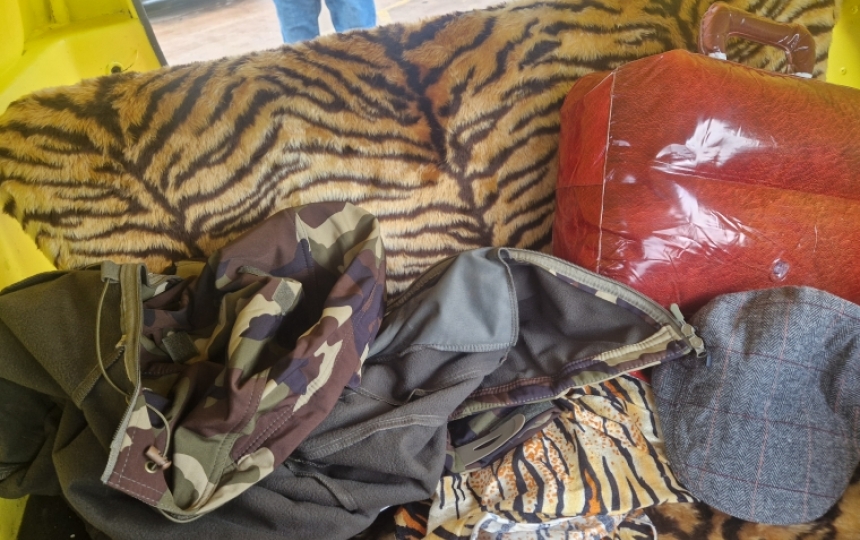Period accessories include leopard skin door cards and seat covers re trimmed with the contents of Marlenes wardrobe. Roof rack, "dahn the market" suitcase, Rodney camouflage jacket and wig. Inflatable Lusty Lolita although she has went down. ...no not in that way!!!! take your mind out the gutter. The all important "midwife on emergency call" sign so you can park anywhere, of course.