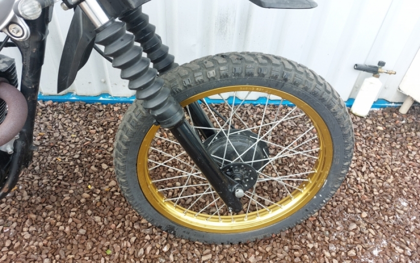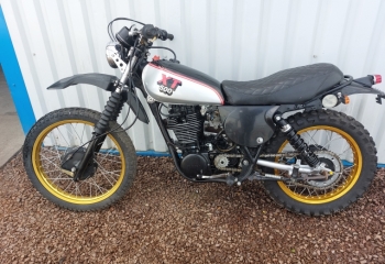 1980 Yamaha XT500.  We brought this in from South Africa. Its fairly tidy original old bike. We fitted a new battery and its up and running. It starts first or second kick and sounds very healthy. Engine casing that covers the front sprocket is missing otherwise bike is complete.